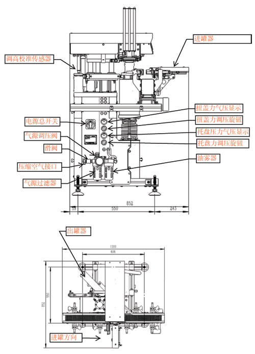 這是一款以電氣程序控制和氣動驅(qū)動實現(xiàn)運轉(zhuǎn)為主的設(shè)備。和傳統(tǒng)機械傳動設(shè)備不同的是,采用氣缸作為主要的動力原件,各動作原件通過編程控制器協(xié)調(diào)動作,應(yīng)用數(shù)目較多的傳感器檢測瓶子、蓋子和設(shè)備上的動作部件。采用氣動和電氣編程控制取代機械傳動裝置帶來的好處是:設(shè)備可以很干凈,避免潤滑油脂對生產(chǎn)環(huán)境和產(chǎn)品的影響,很重要的是,可以對產(chǎn)品必須達到的指標(biāo)參數(shù)進行監(jiān)控和靈活調(diào)整,如真空度、擰蓋力矩等;谠撛O(shè)備的特點,設(shè)備的管理人員只要掌握機器的工作程序流程、每個傳感器信號在機器程序中的作用,就可以輕松實現(xiàn)對設(shè)備的維護調(diào)整和故障排除。