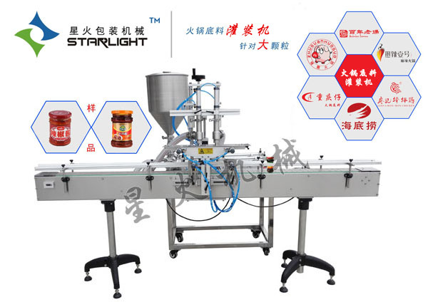 香辣醬灌裝機是星火公司專門針對香辣醬產(chǎn)品進行定量灌裝的一種新型灌裝設(shè)備,在使用上分為自動香辣醬裝機和半自動香辣醬裝機兩種,半自動香辣醬灌裝機需要人工放瓶、可以選擇AUTO灌裝和FOOT灌裝,然后用我公司臺式旋蓋機旋蓋,半自動貼標(biāo)機進行貼標(biāo)。自動香辣醬灌裝機一般是配合自動旋蓋機,漿糊貼標(biāo)機等設(shè)備一起使用從而構(gòu)成一套灌裝流水線。