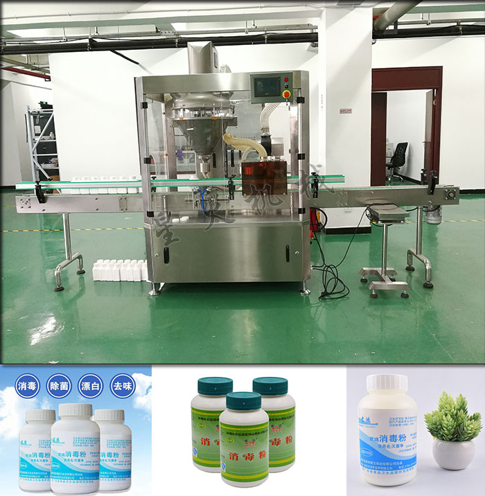 2、全自動(dòng)瓶裝消毒粉灌裝機(jī)速度快:采用螺旋下料、光控技術(shù)。