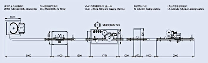 1、LP20O全自動理瓶(GP62)圓盤供瓶機 2、QX-4塑料瓶的凈化氣洗瓶機 3、YG4/1四泵液體灌裝旋(軋)蓋-體機 4、FL電磁感應(yīng)鋁箔封口機 5、LT不干膠貼標(biāo)機